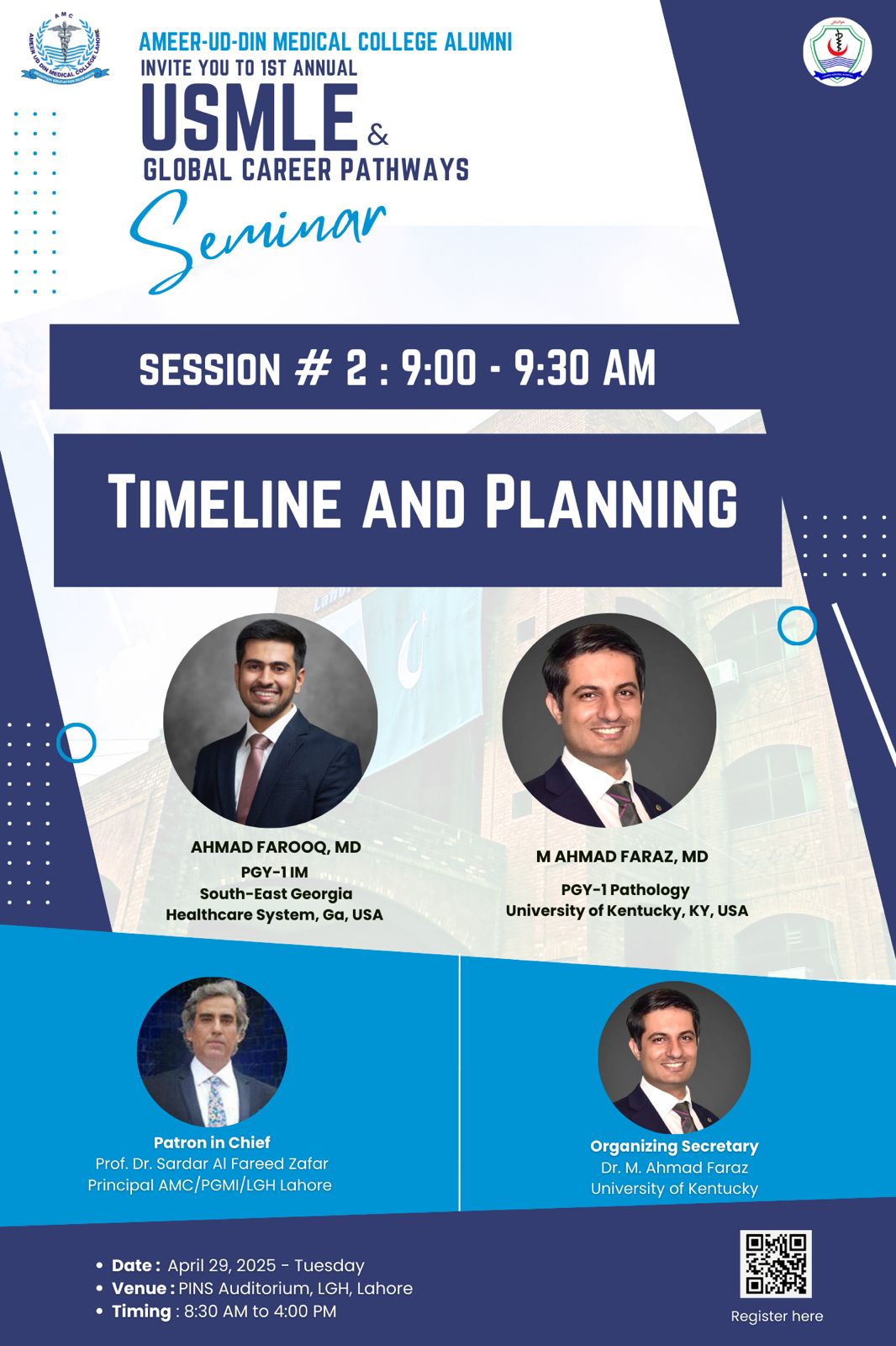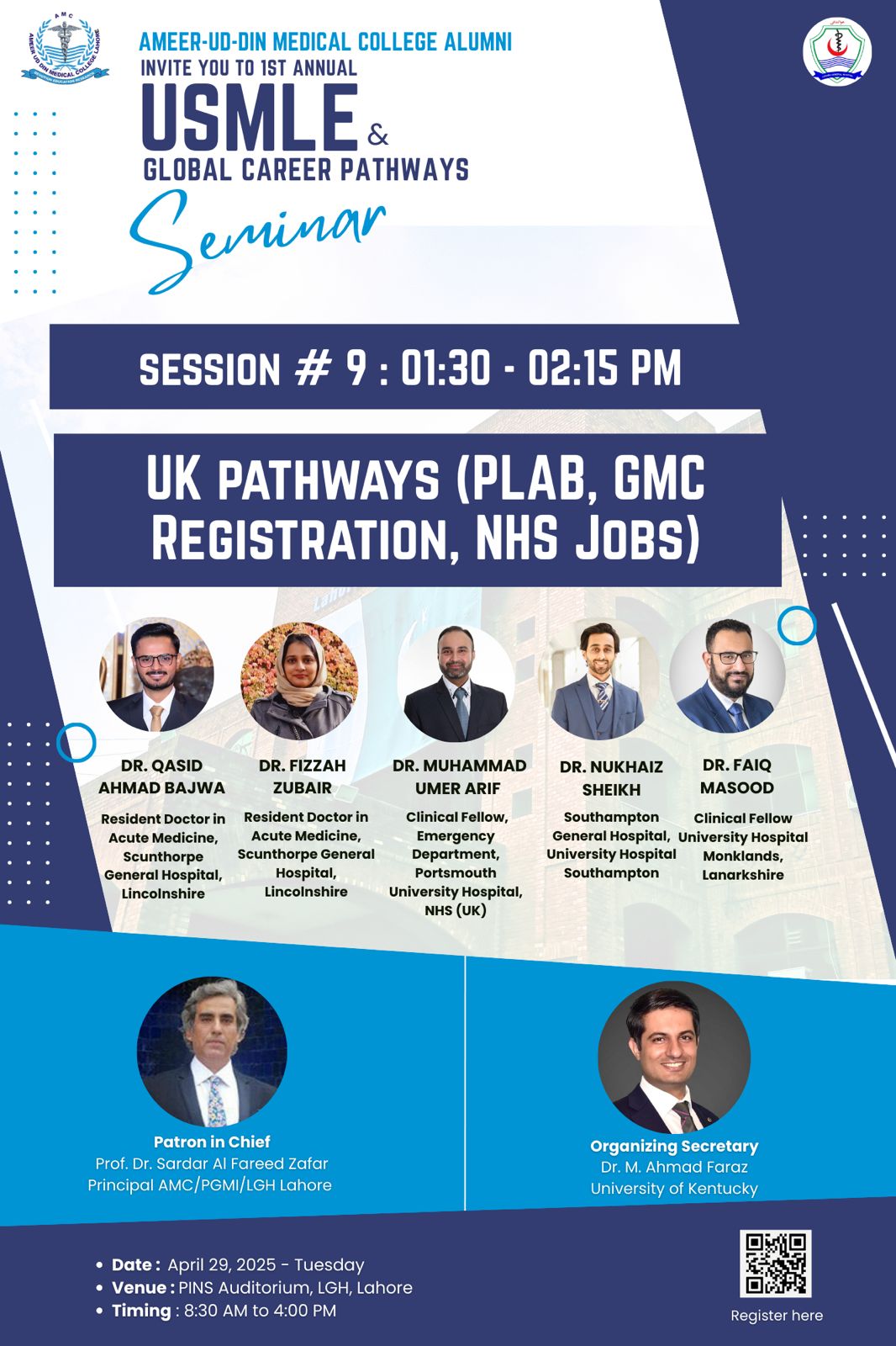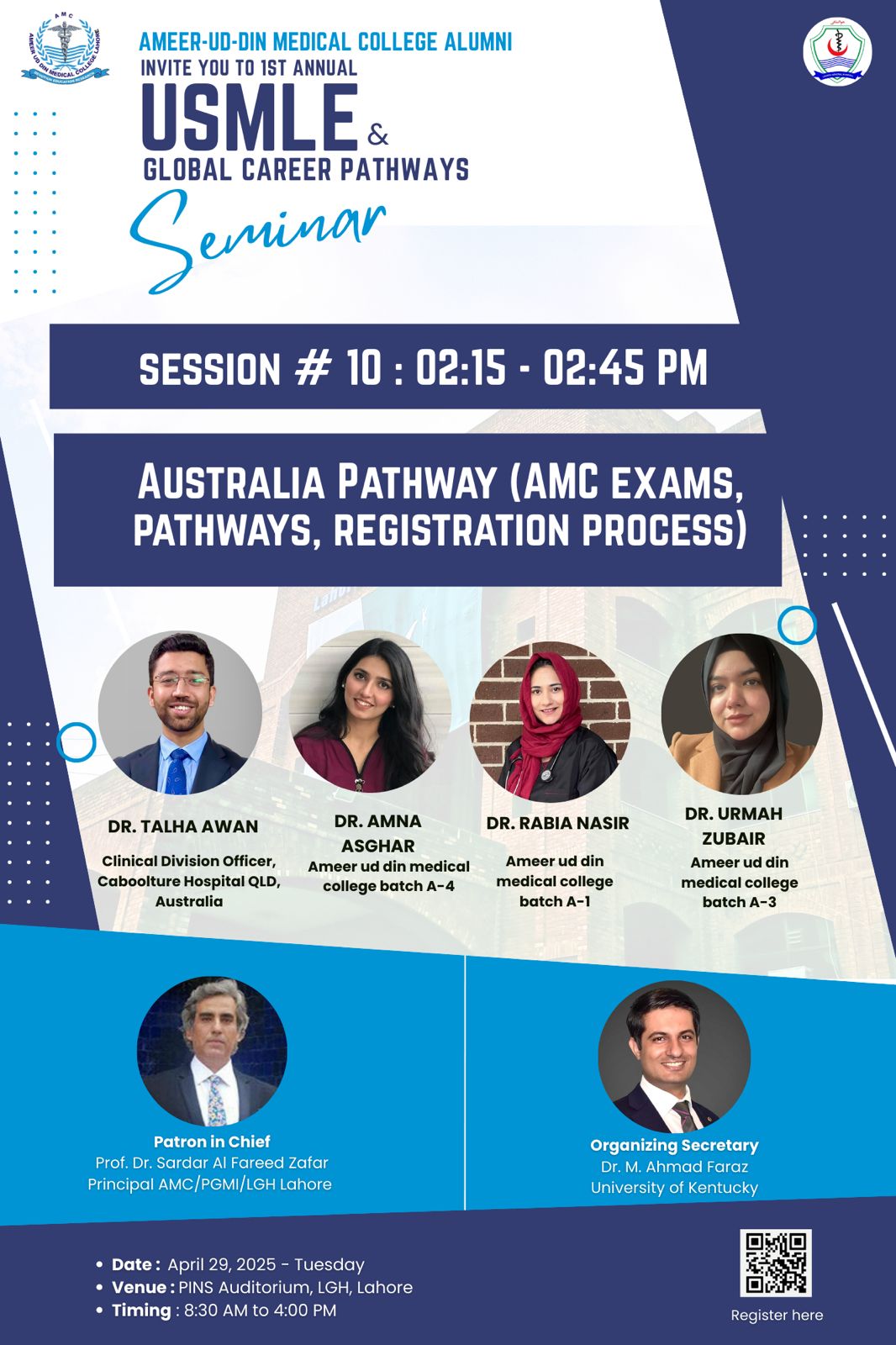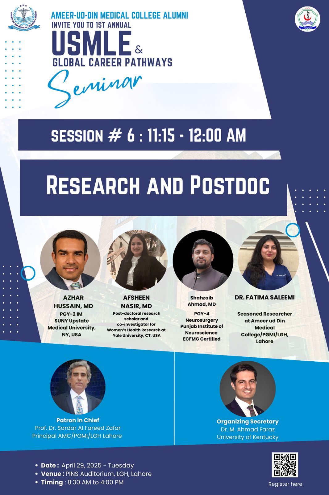 These speakers are proud alumni of Ameer-ud-Din Medical College, and their journeys span continents—covering clinical medicine, research, public health, and medical education. Their stories are not only about success but also about resilience, vision, and the courage to take unconventional paths.