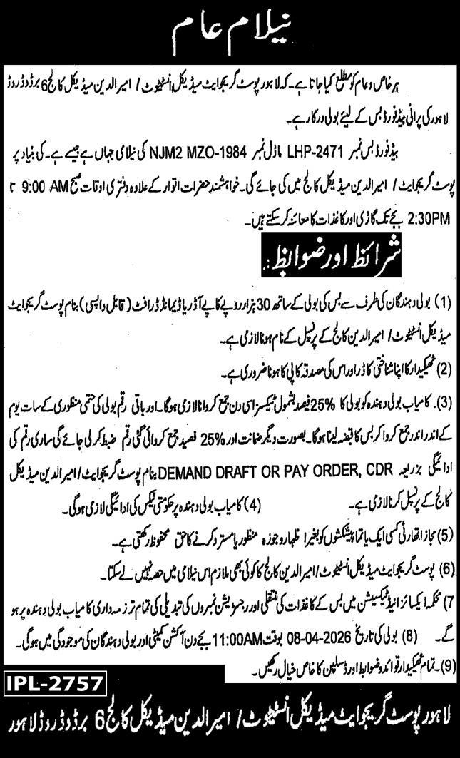at Postgraduate Medical Institute / Ameer-ud-Din Medical College, Birdwood Road, Lahore.